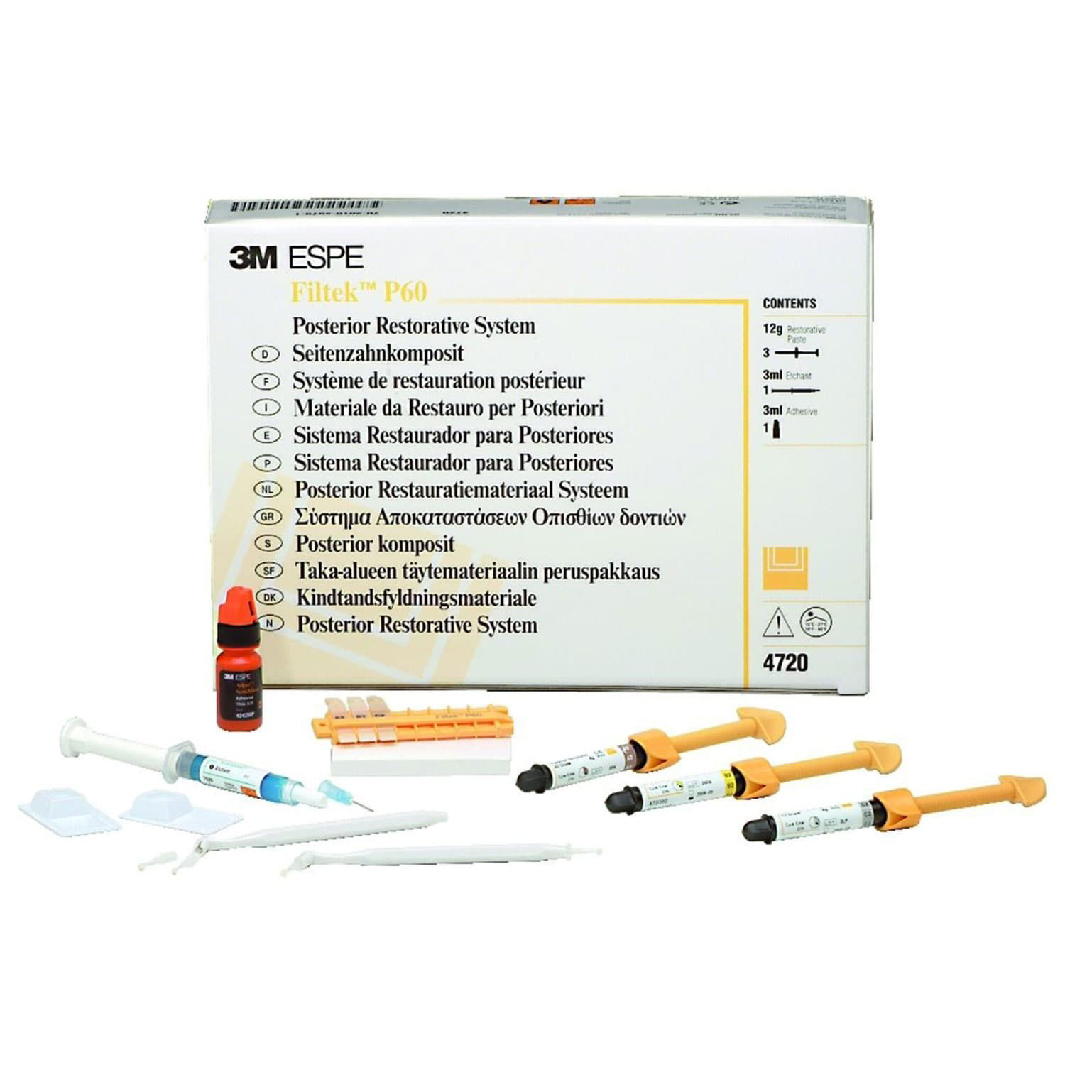 Filtek P60 restaurador posterior es una resina estética fotopolimerizable, radiopaca, diseñada específicamente para utilizarse en restauraciones posteriores directa o indirectas, en técnica incremental de 2 a 2,5 mm. La adhesión a la estructura dental se logra al utilizar un sistema adhesivo dental, como Single Bond2 o Single Bond Universal. Ofrece superior empacabilidad, baja contracción de polimerización, y excelente resistencia al desgaste.